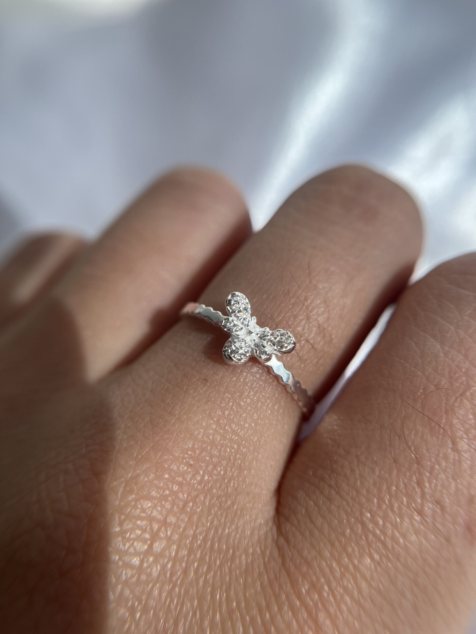 Anel Coração Cravejado 4x6mm Aro Trabalhado