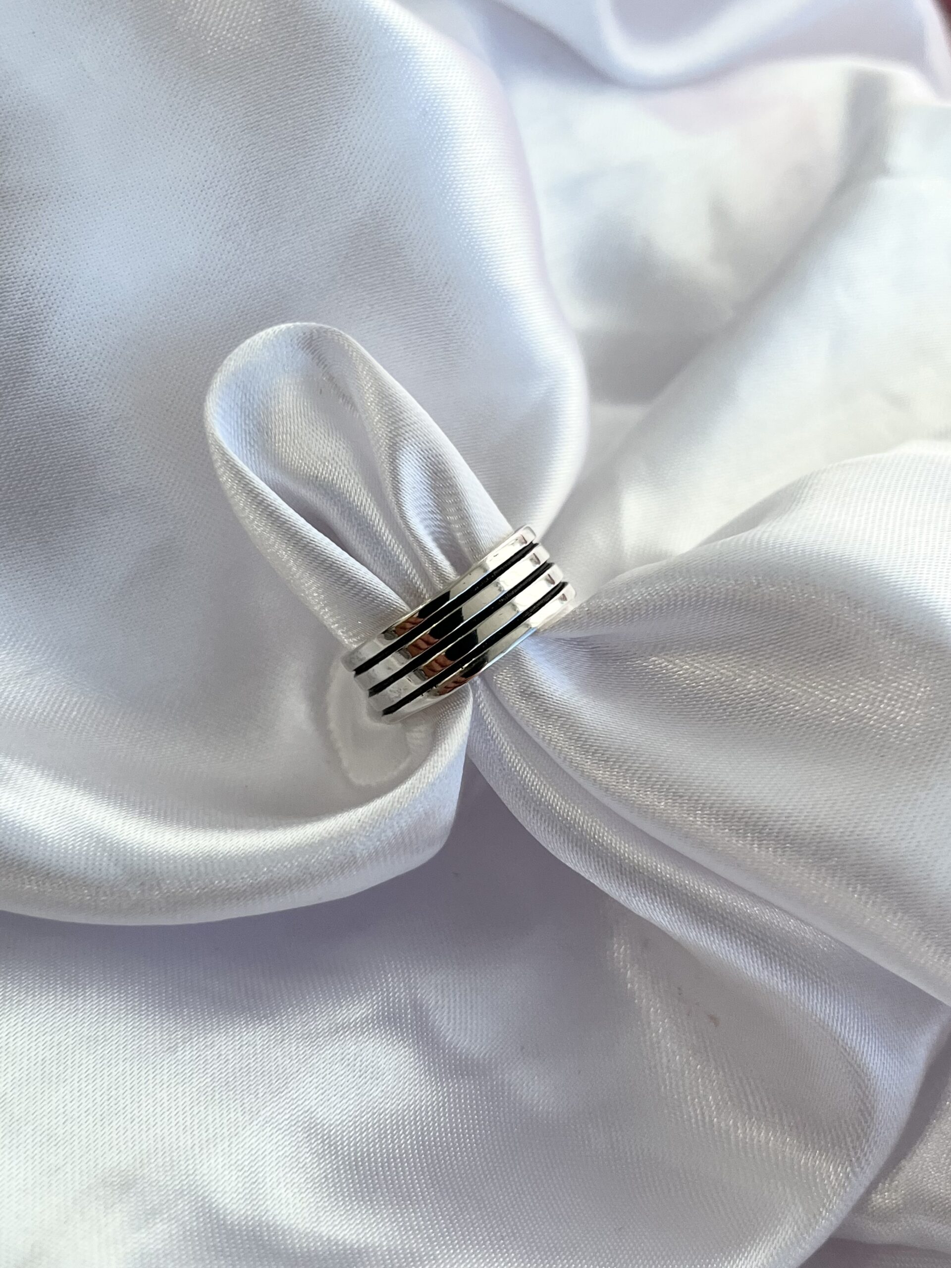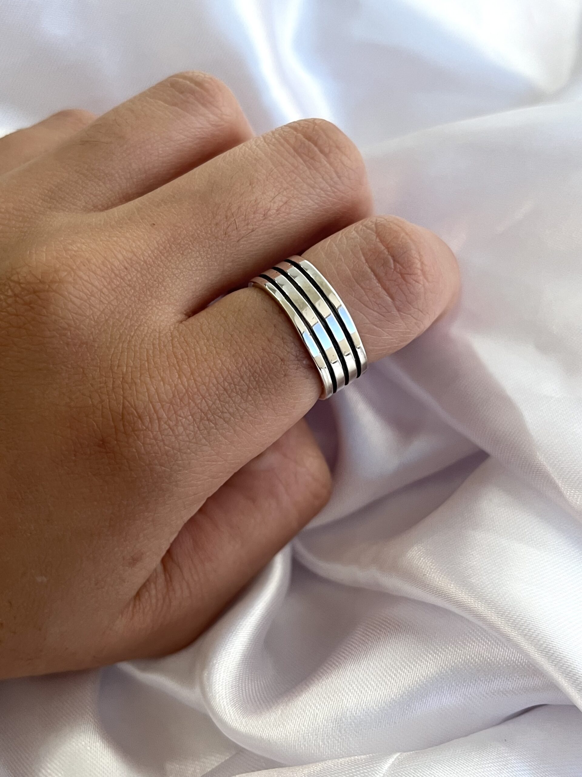 Anel Maciço Quadrado Detalhes Listras Envelhecidas