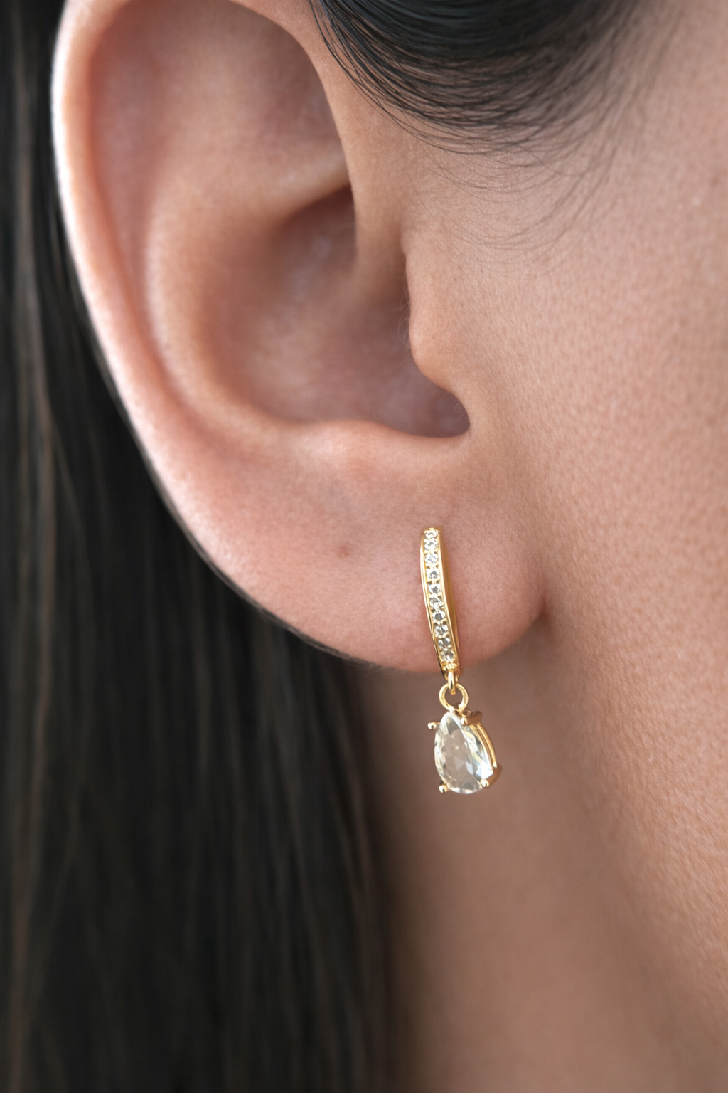 Argola Click Gota Zircônia Cristal Cravejada 18mm Banhado em Ouro 18k – SEMIJOIA