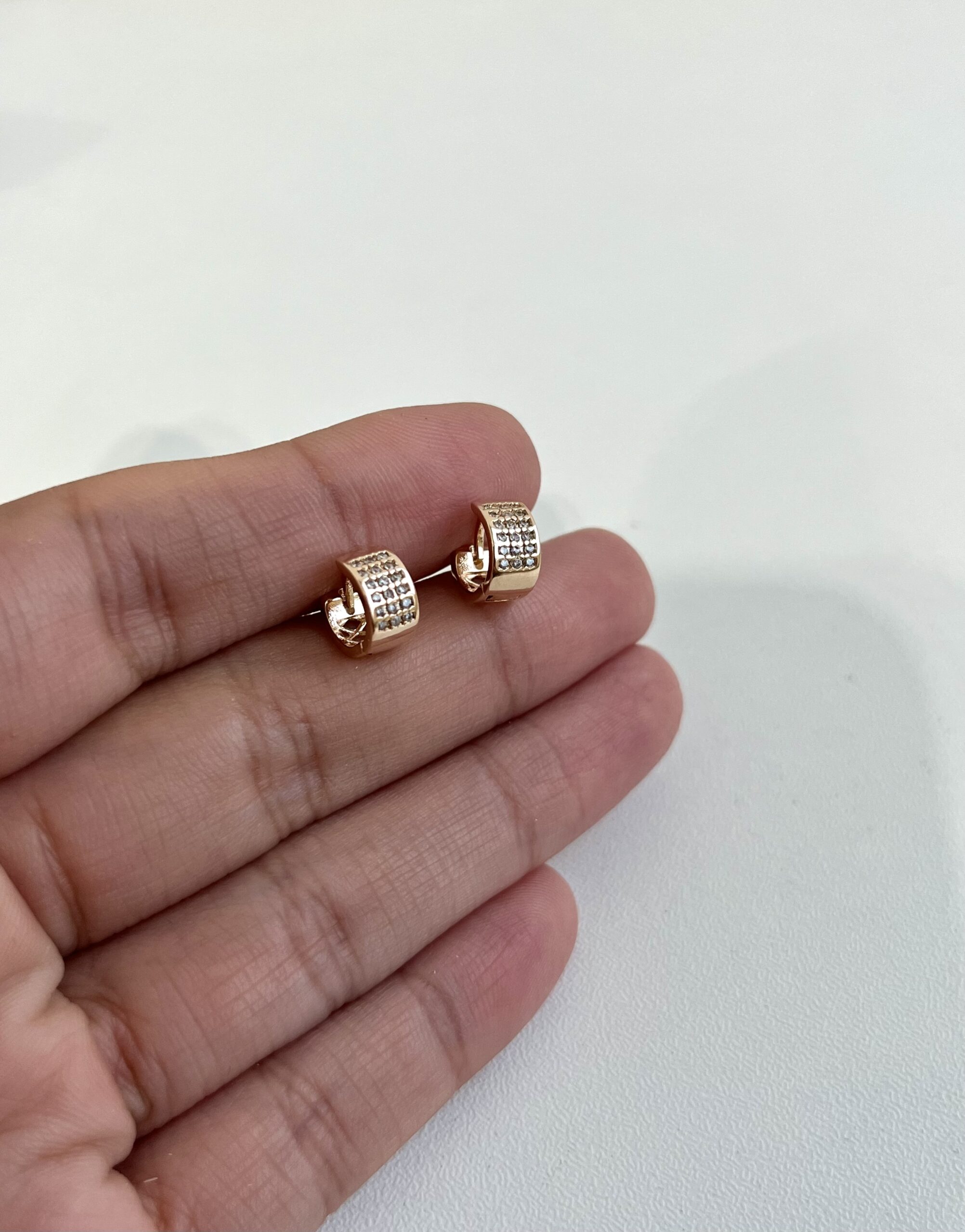 Argola Click Redonda 3 Fileiras Cravejadas 8mm Banhado em Ouro 18k – SEMIJOIA