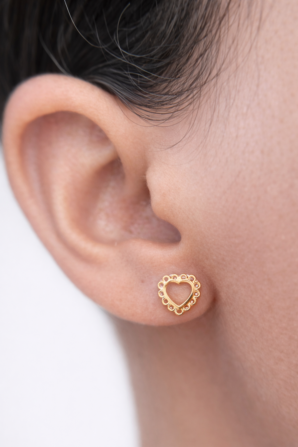 Brinco Coração Vazado com Detalhes 6mm Banhado em Ouro 18k – SEMIJOIA
