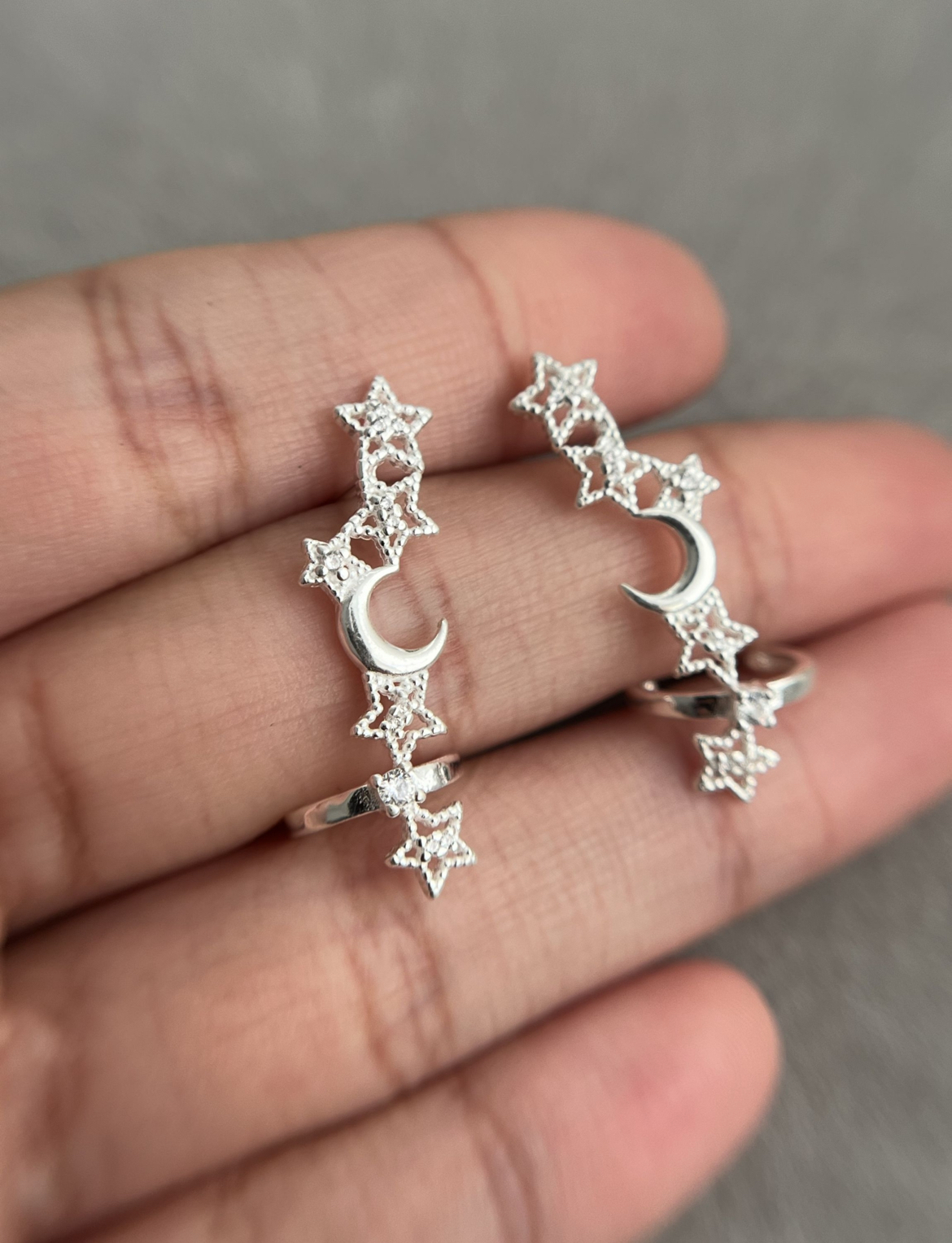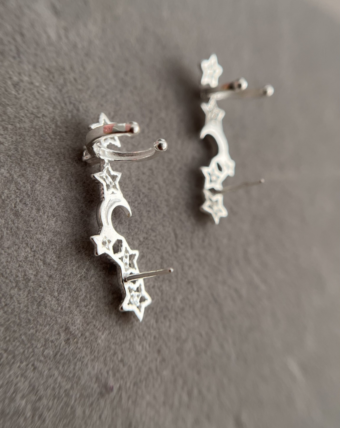 Brinco Estrelas Vazadas com Pontos de Luz e Lua Lisa + Fake 30x8mm
