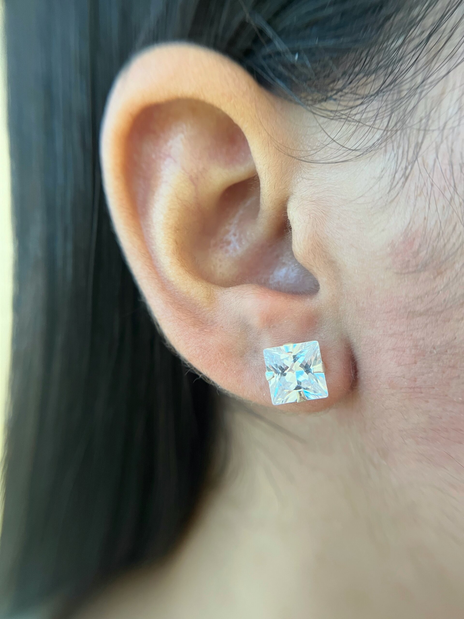 Brinco Ponto de Luz Zircônia Quadrada 8mm