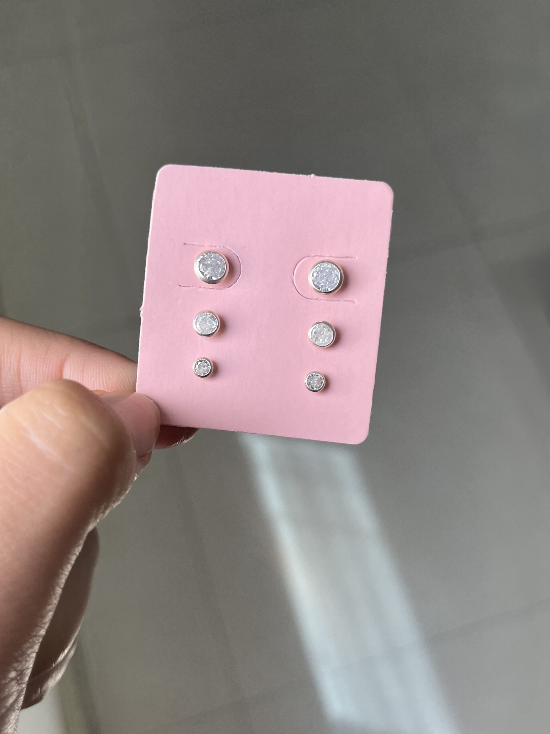 Trio de brincos Redondos Cristais Embutidos 6mm/4mm e 3mm