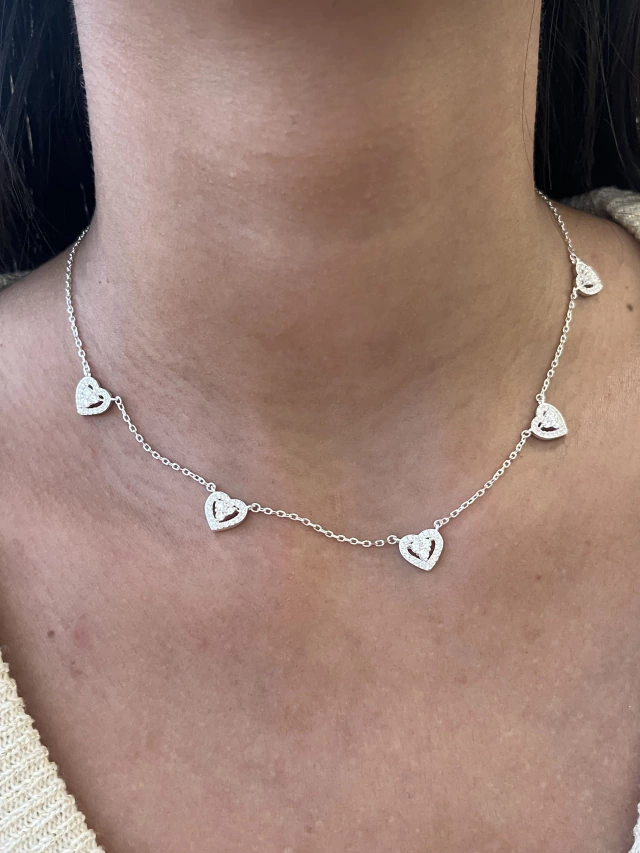 Colar/ Choker Corações Cravejados Cristais Luxo 40cm + 5cm de extensor