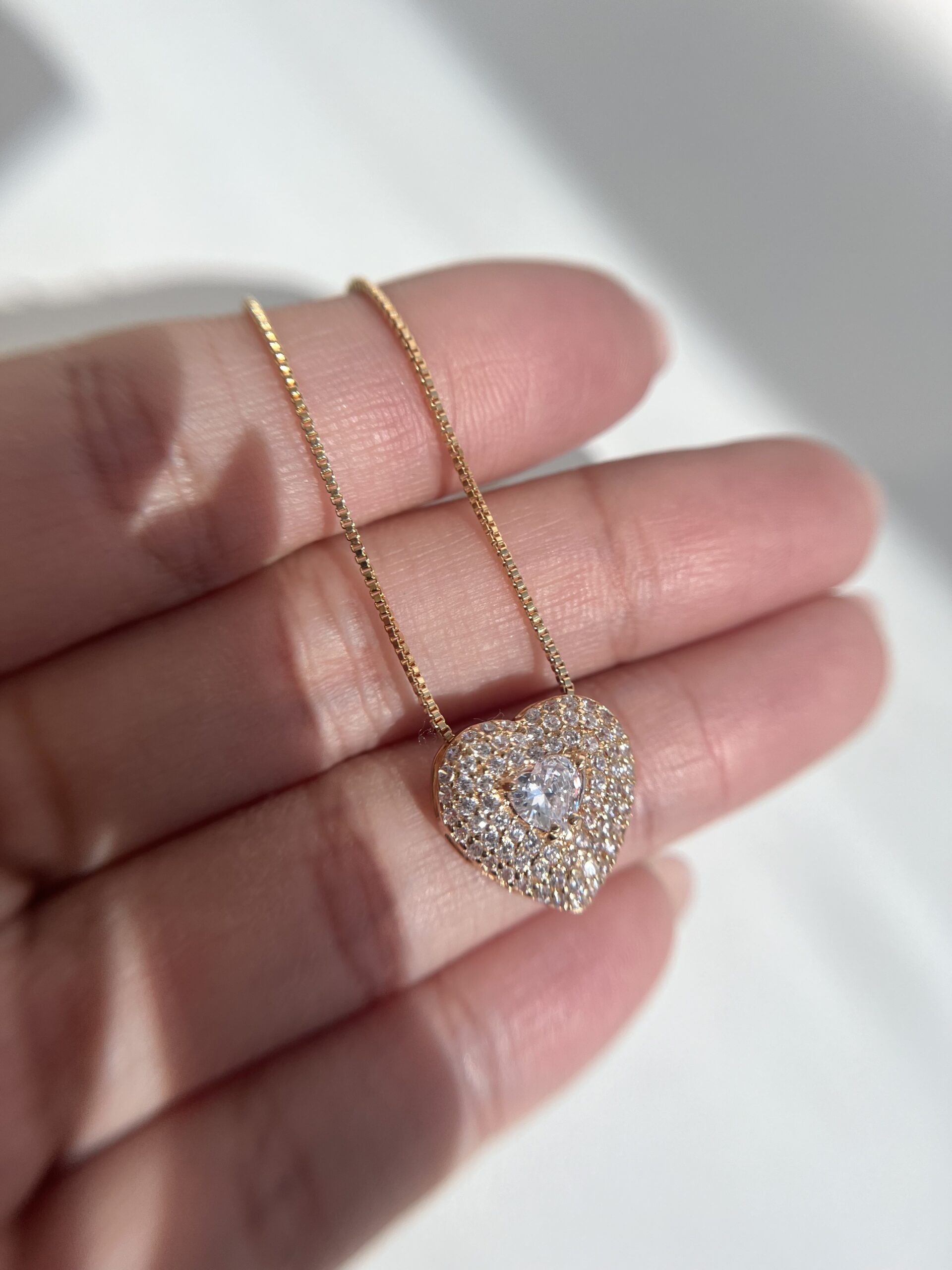Colar Coração Cravejado com Zircônia Cristal 14mm 45cm Banhado em Ouro 18k – SEMIJOIA
