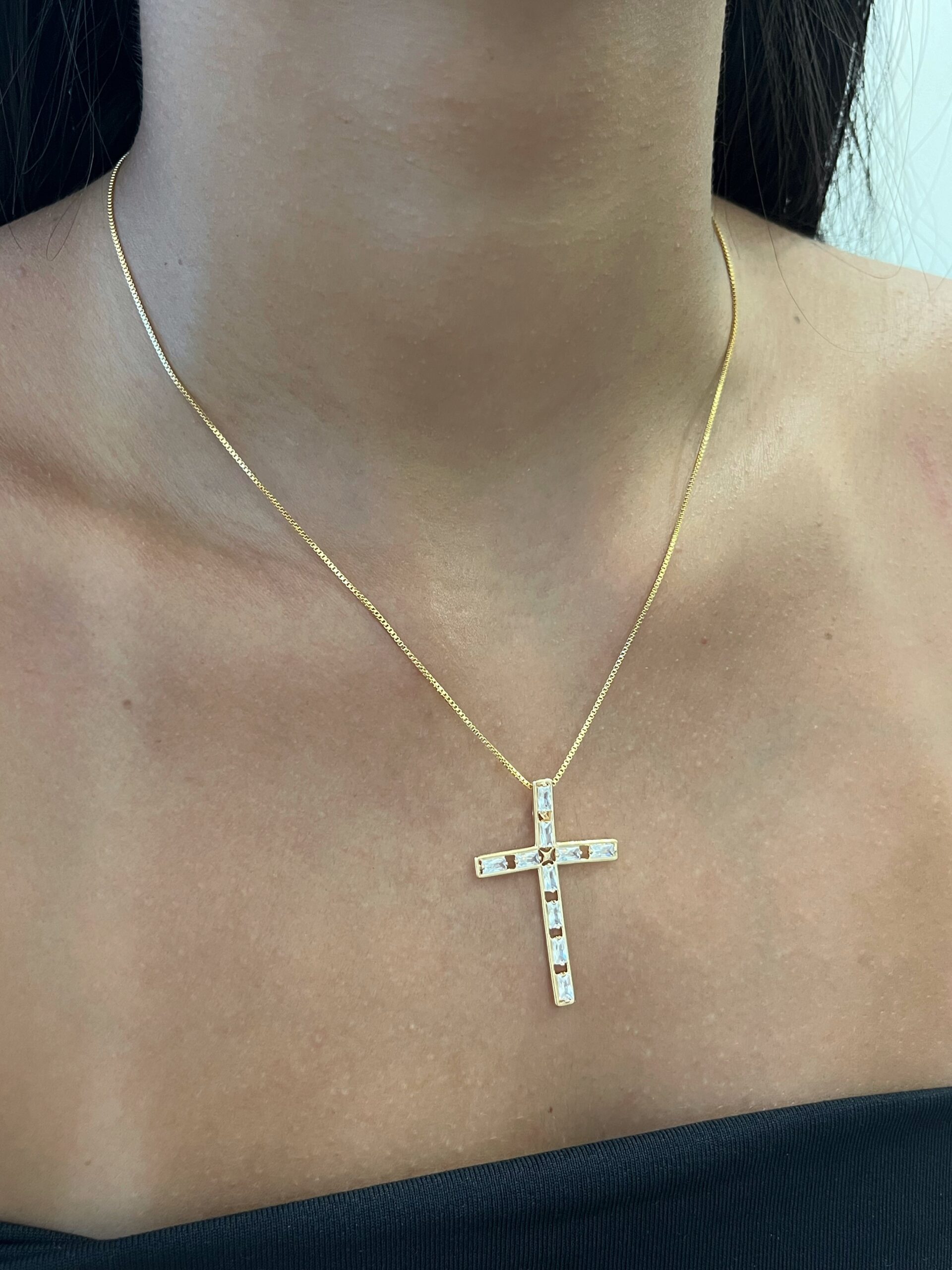 Colar Cruz Cravejada Banhado a Ouro 18k 45cm +5cm de extensor