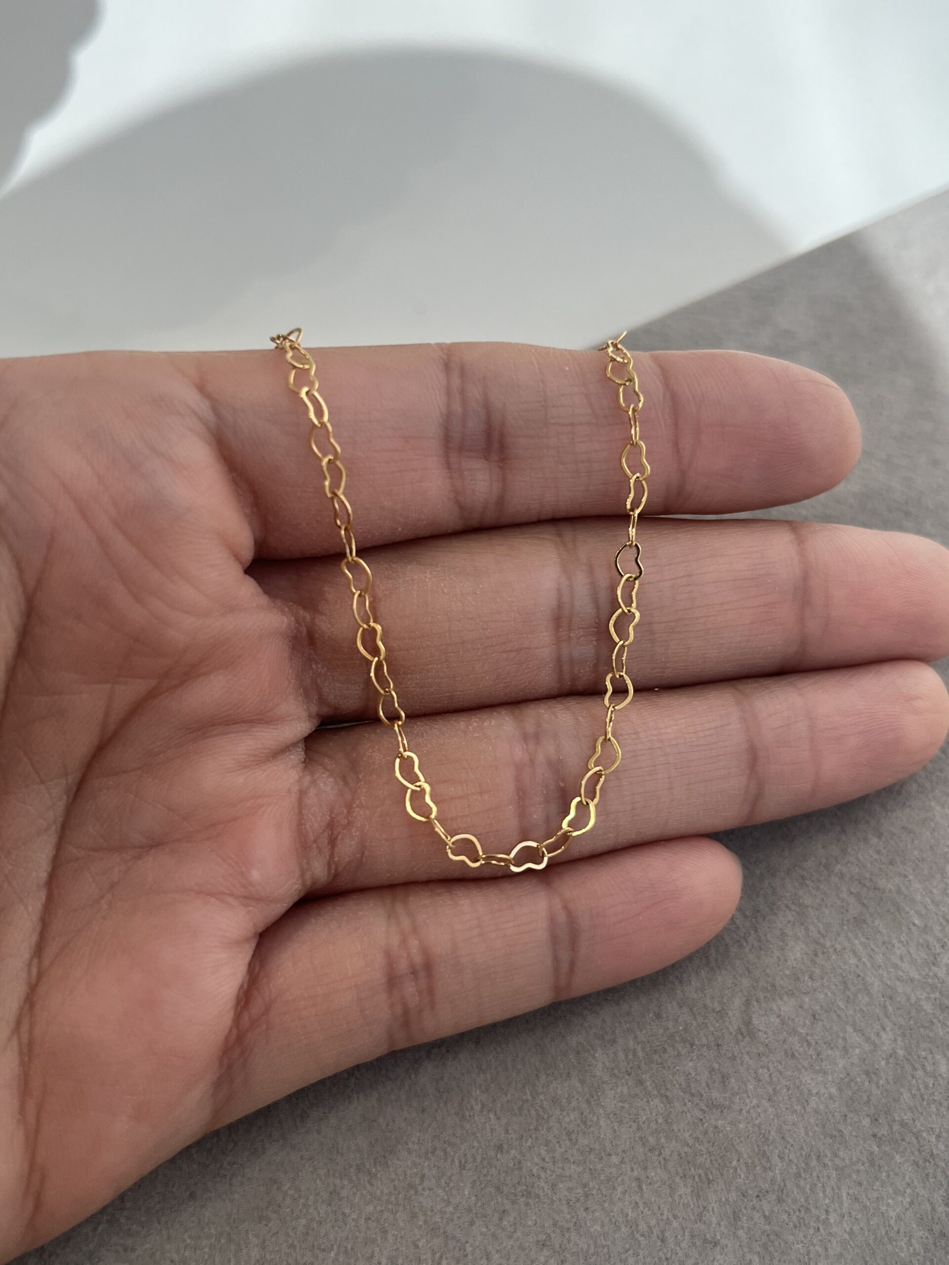 Corrente Elos de Corações 60cm Banhado em Ouro 18k – SEMIJOIA