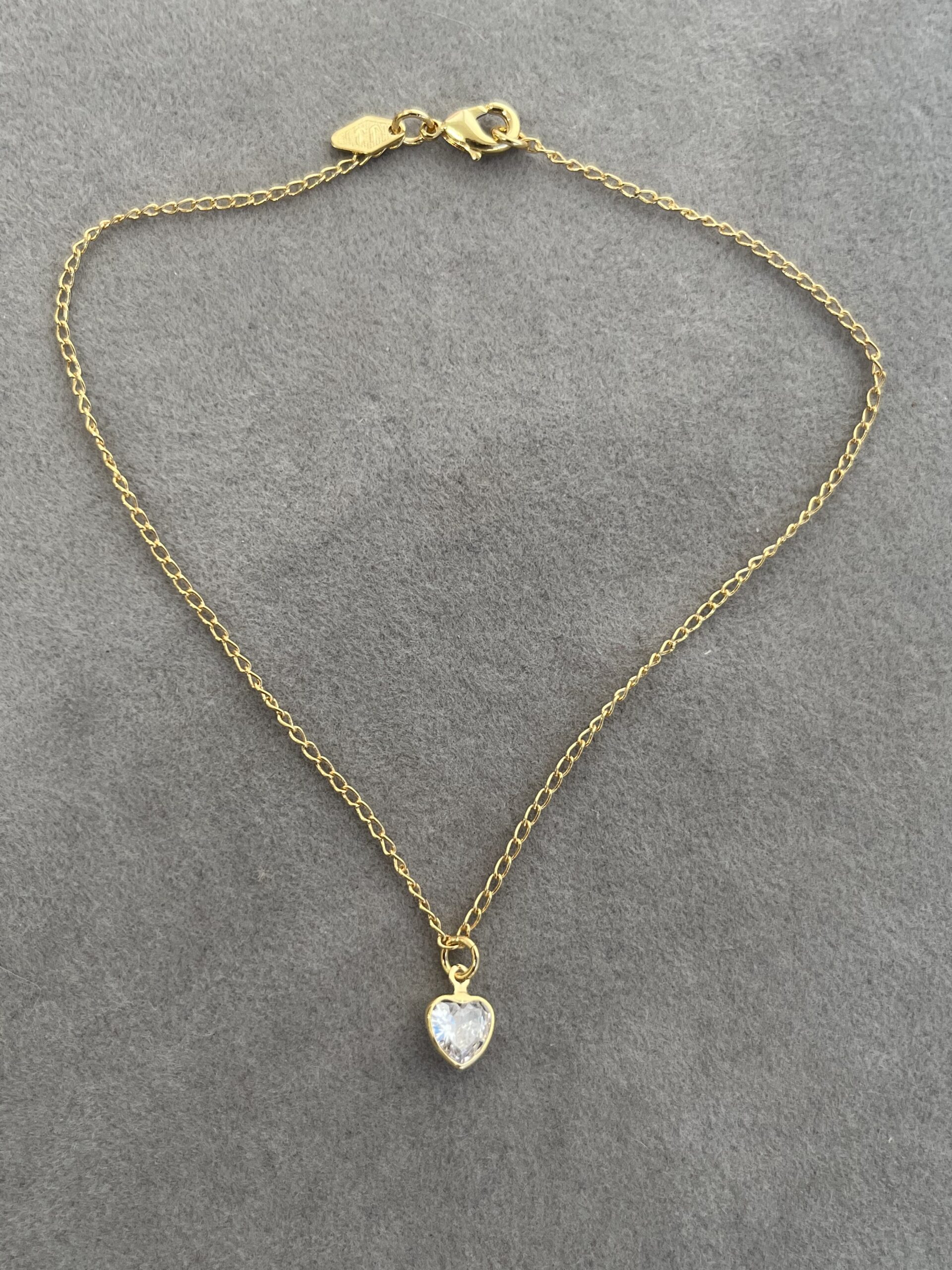 Tornozeleira Coração Zircônia Cristal 24cm de extensor Banhado a Ouro 18k – SEMIJOIA