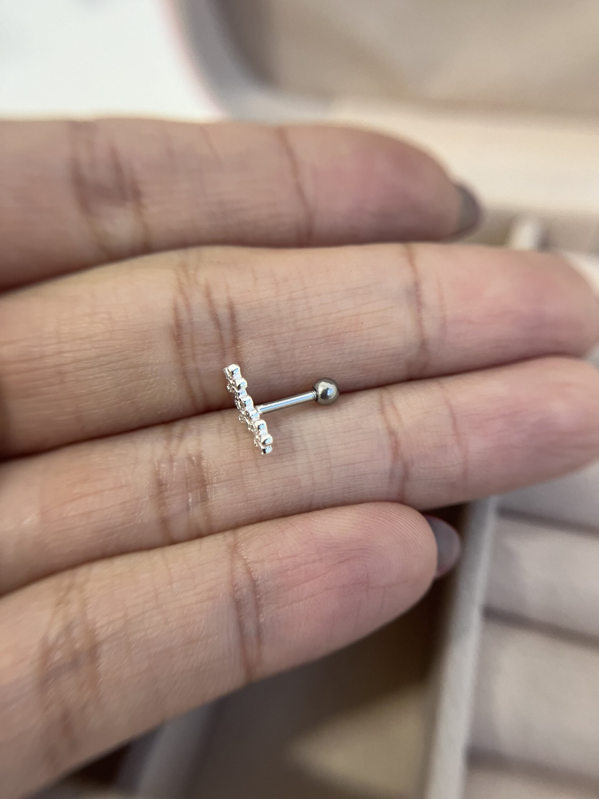 Piercing Conch Cravejado 1 Fileira Zircônias Cristais haste em Aço Inoxidável