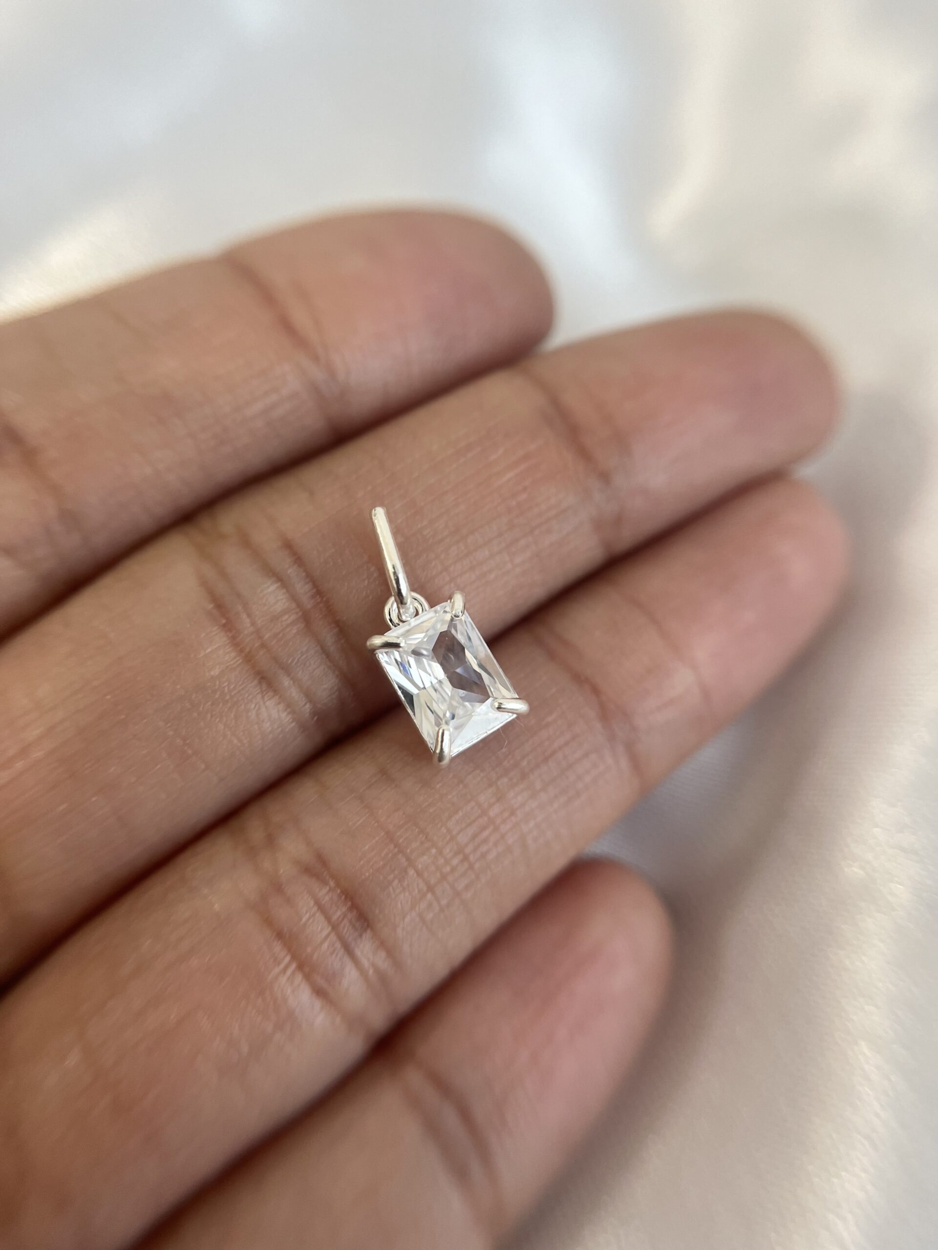 Pingente Zircônia Retangular Verde Esmeralda 16x6mm