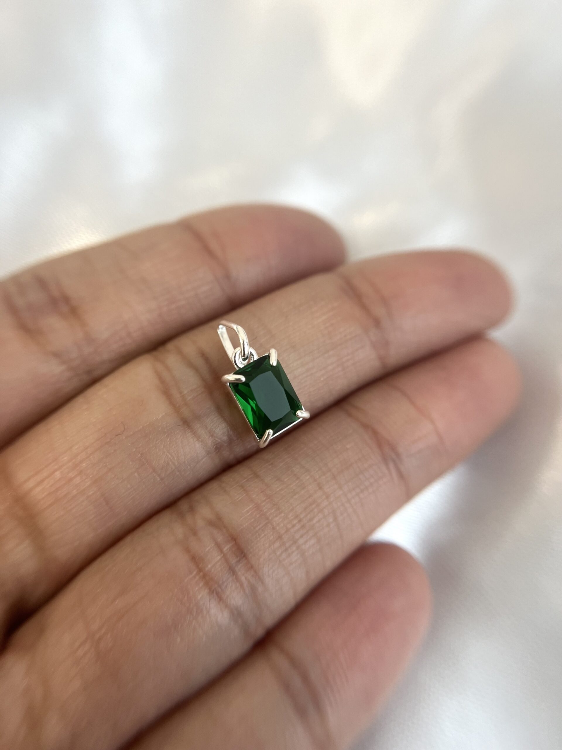 Pingente Zircônia Retangular Verde Esmeralda 16x6mm