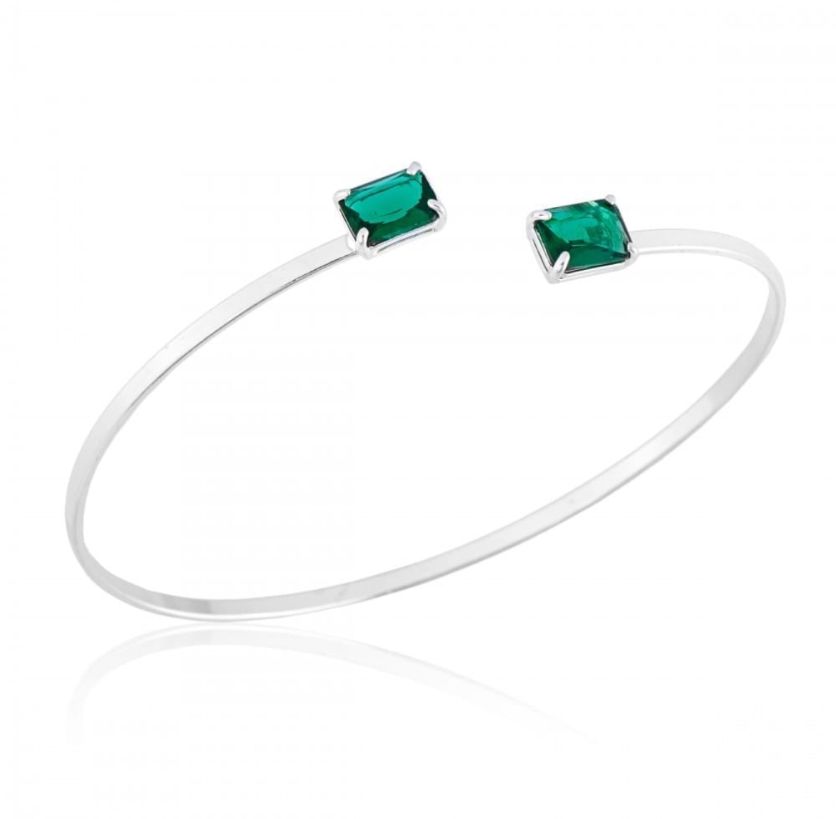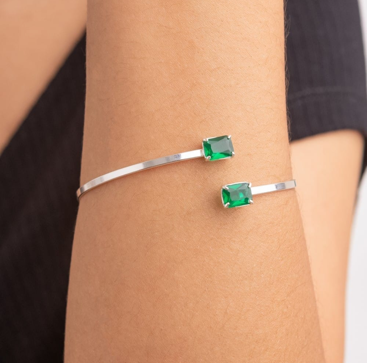 Bracelete Fio Laminado com Zircônias Verde Esmeralda Regulável Luxo