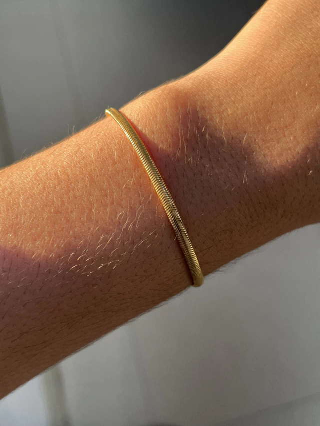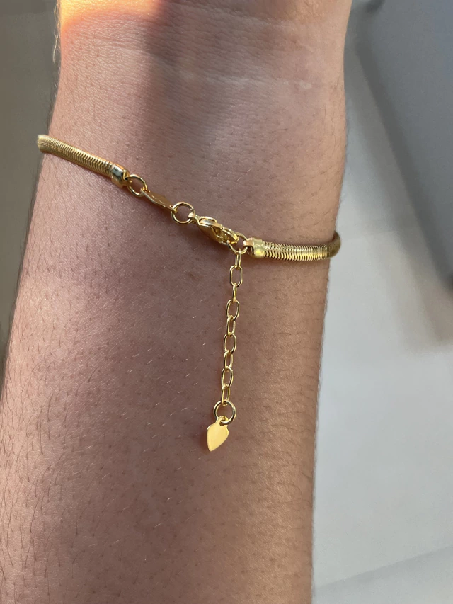 Elegante e atemporal, a pulseira banhada a ouro 18k é perfeita para quem busca sofisticação e versatilidade em uma única peça. com acabamento refinado e brilho delicado, ela valoriza o visual e complementa qualquer produção com muito charme.