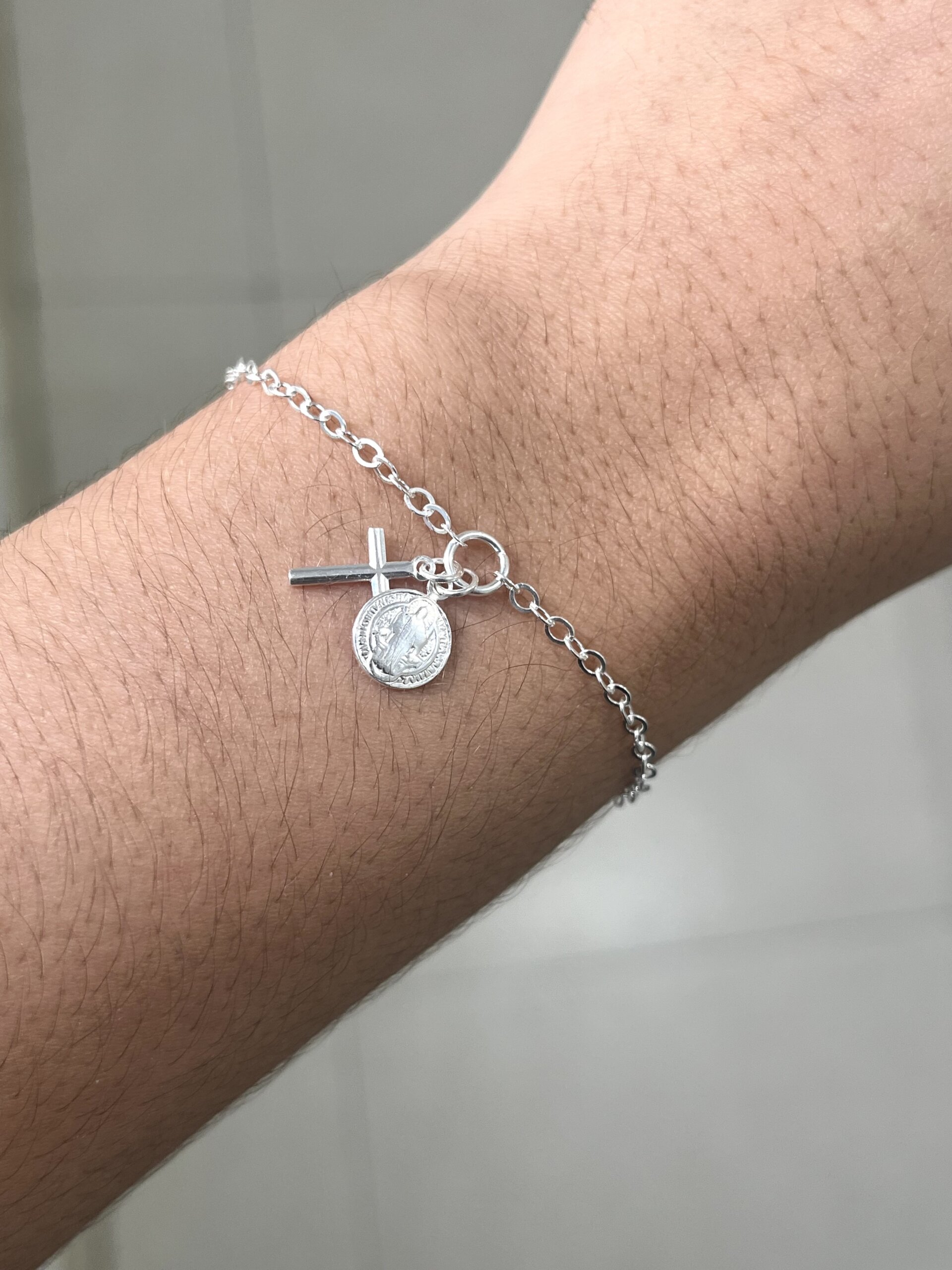 Pulseira Medalha São Bento e Cruz 19cm