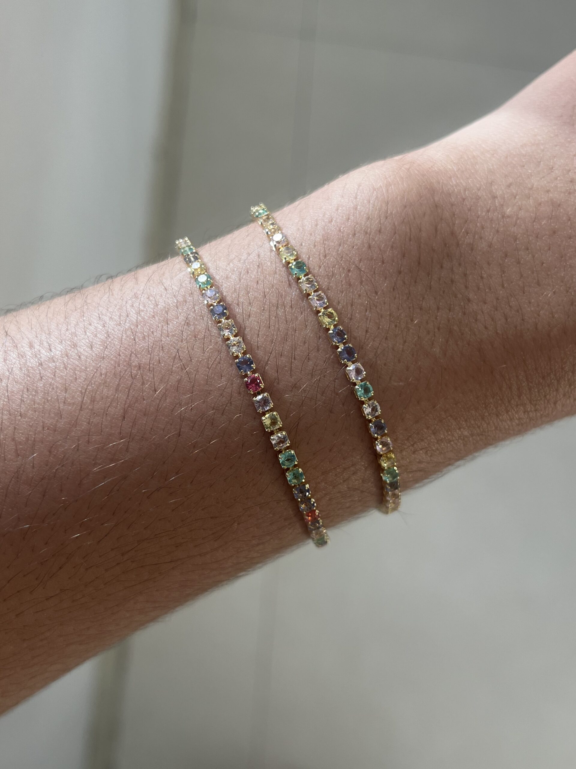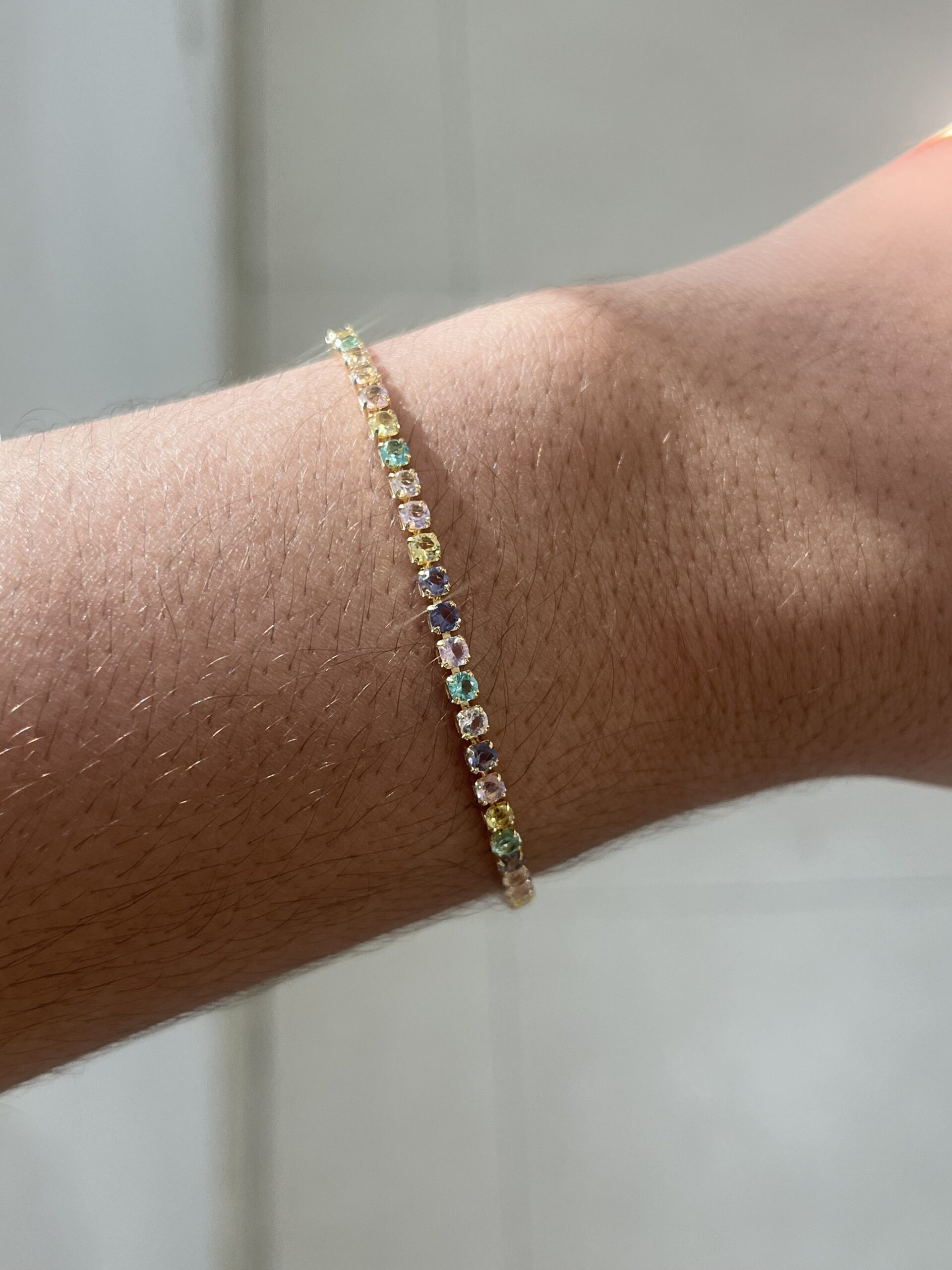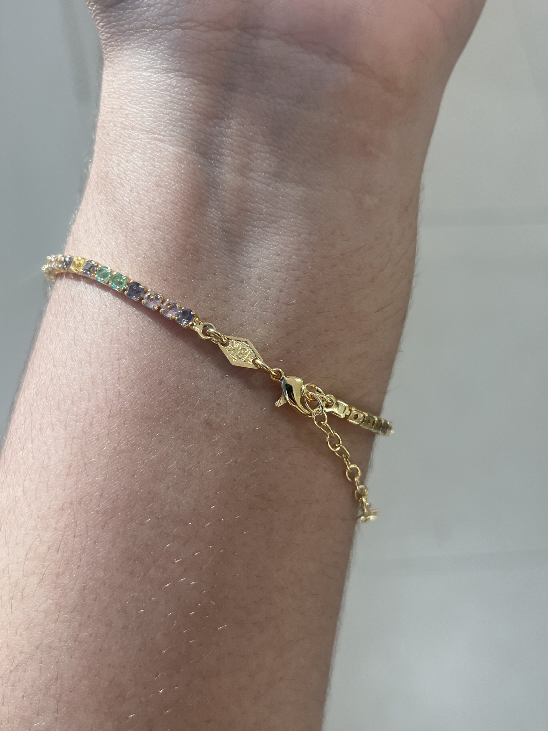 Pulseira Riviera Zircônias Coloridas 17cm + 3cm de extensor Banhado a Ouro 18k – SEMIJOIA